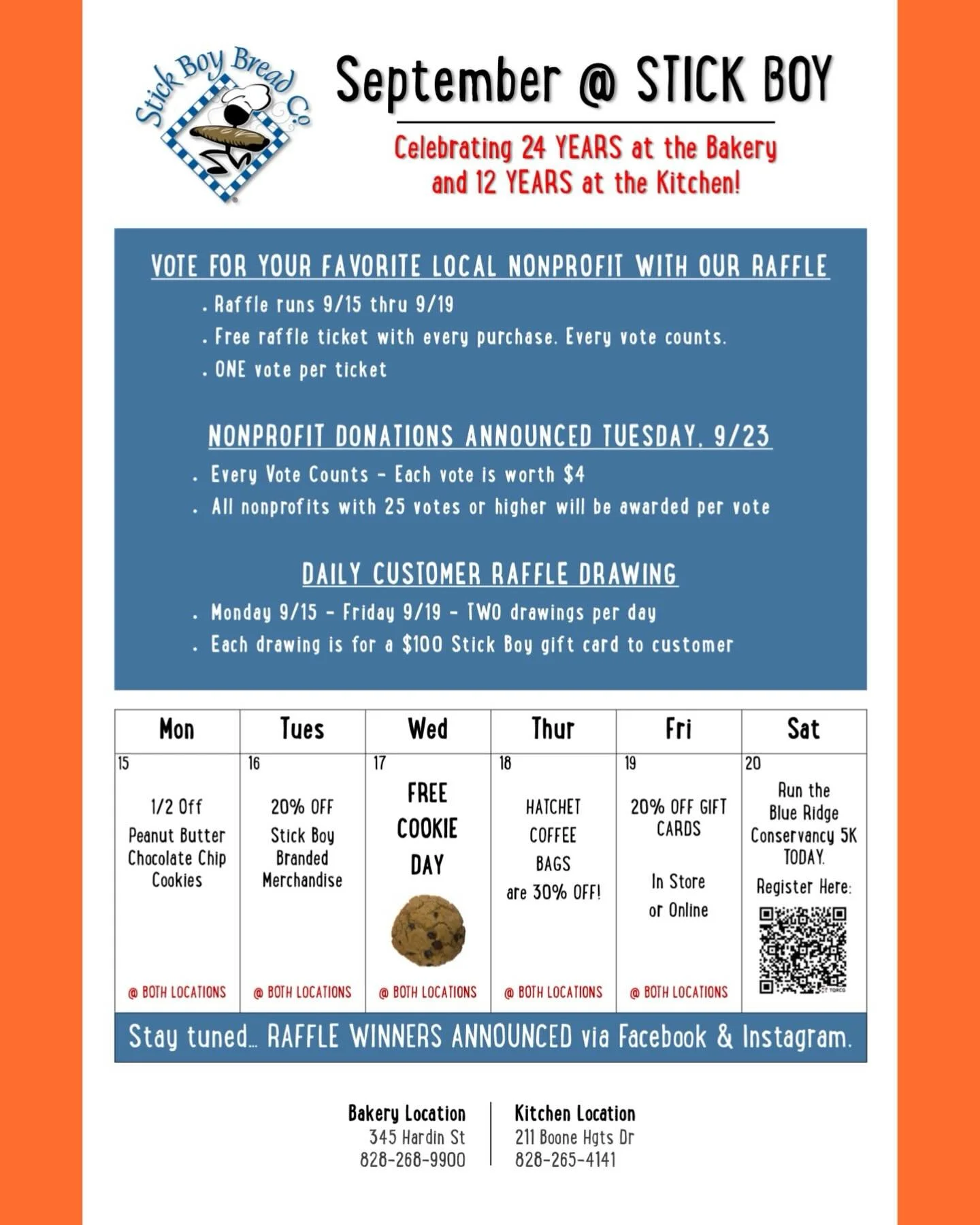 Situated on Hardin Street across from the campus of Appalachian State, come visit us at the original Stick Boy location where we have been sharing our love of food with High Country since 2001. Using traditional ingredients and methods, we produce a wide range of baked goods and also have a full espresso and smoothie bar. We only have about a dozen parking spots, but in this bustling production bakery you’ll find naturally fermented sourdough loaves, chocolate torte, cream cheese cinnamon rolls and a delicious frothy cappuccino.